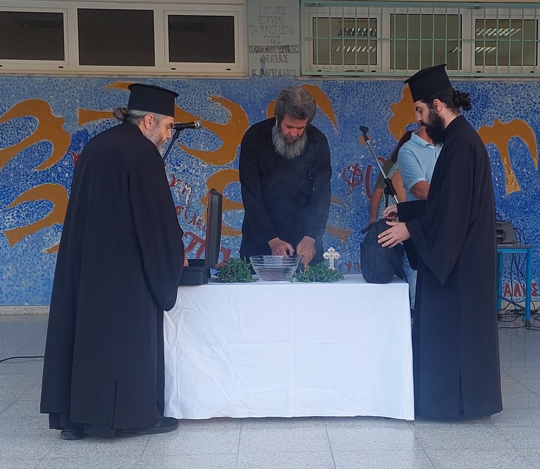 Η νέα σχολική χρονιά δεν μπορούσε να ξεκινήσει χωρίς τις ευλογίες της εκκλησίας μας. Στις 12 Σεπτεμβρίου πραγματοποιήθηκε στο σχολείο μας τελετή Αγιασμού. Τον αγιασμό τέλεσαν οι εφημέριοι της εκκλησίας του Αγίου Νεοφύτου, π. Θεοχάρης και π.Θεοχάρης Ψάλιος και ο θεολόγος του σχολείου μας, π. Σάββας Μουλλωτός.
