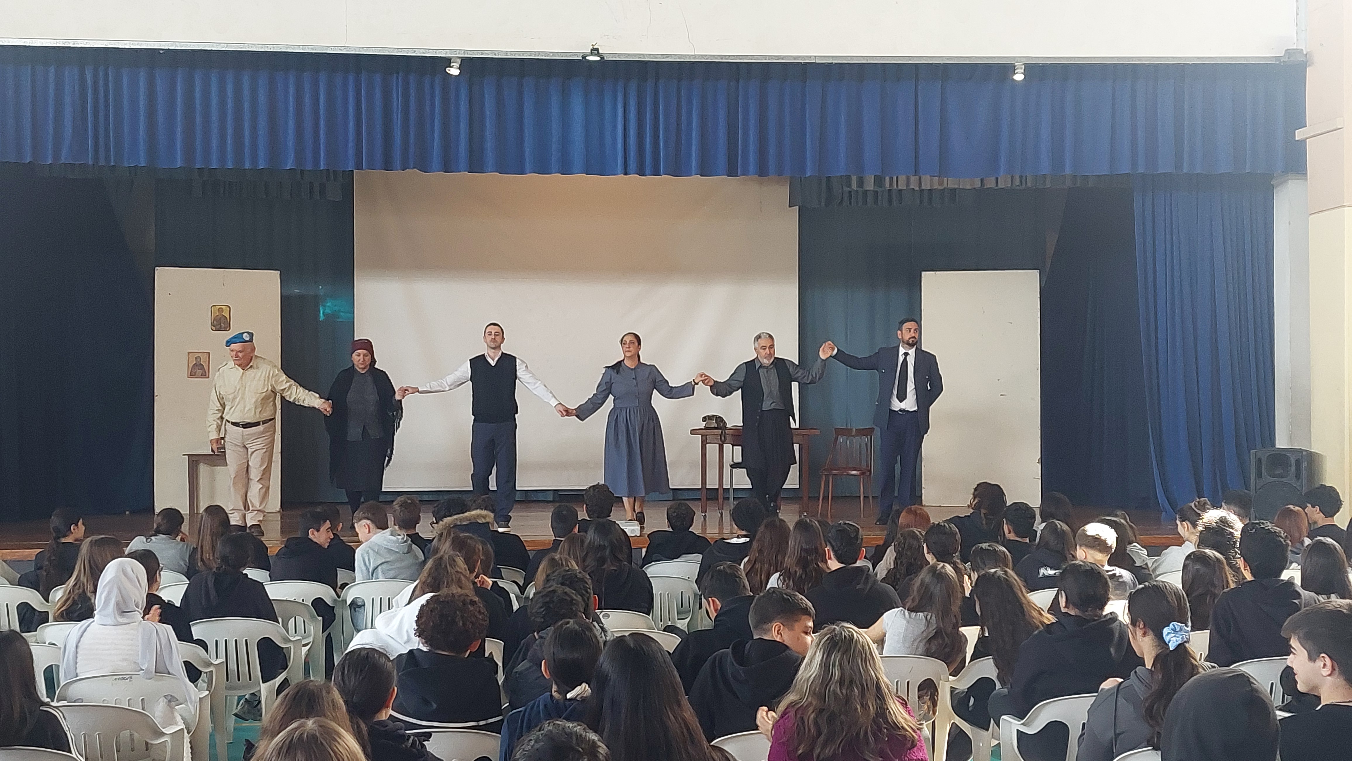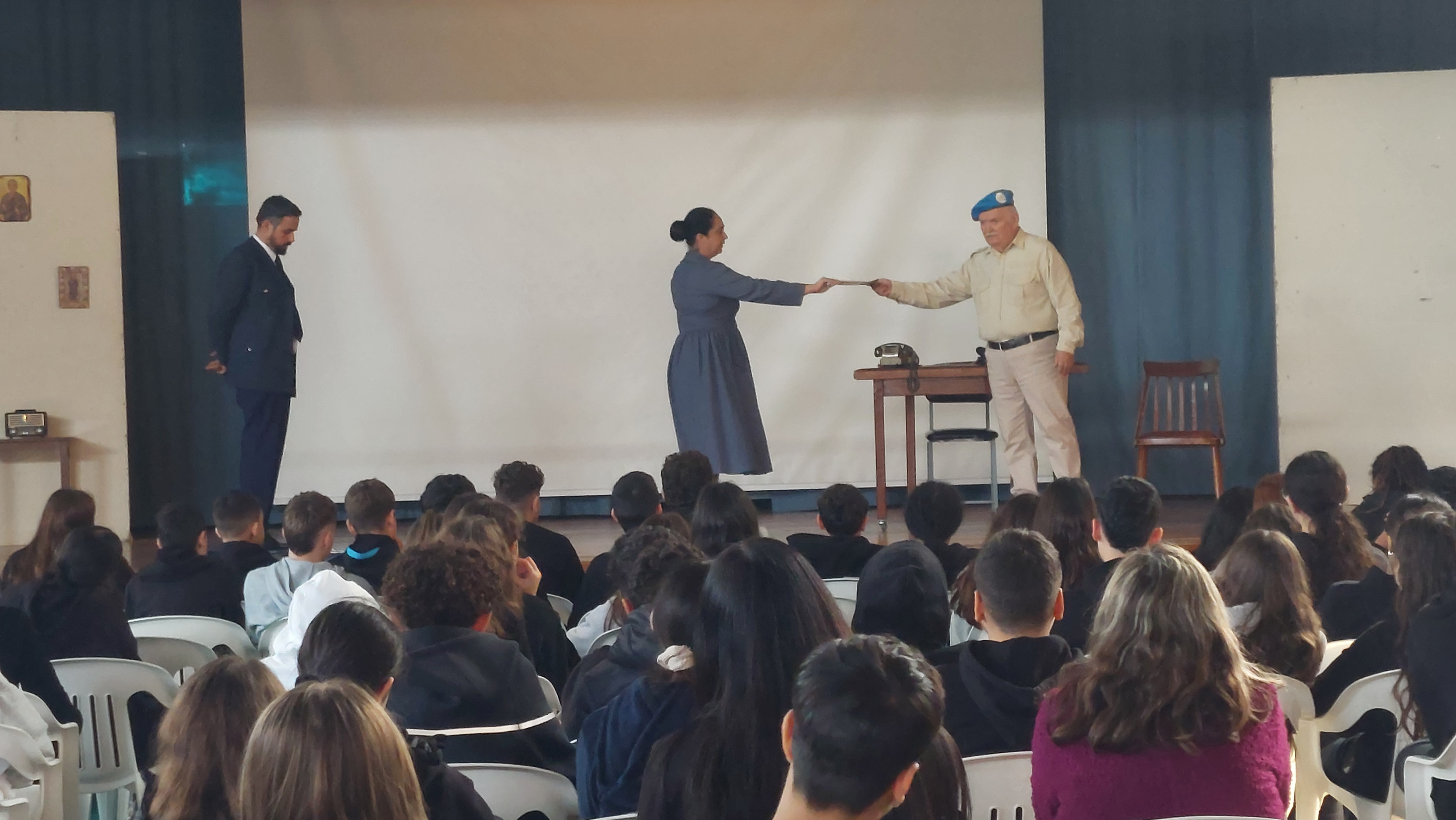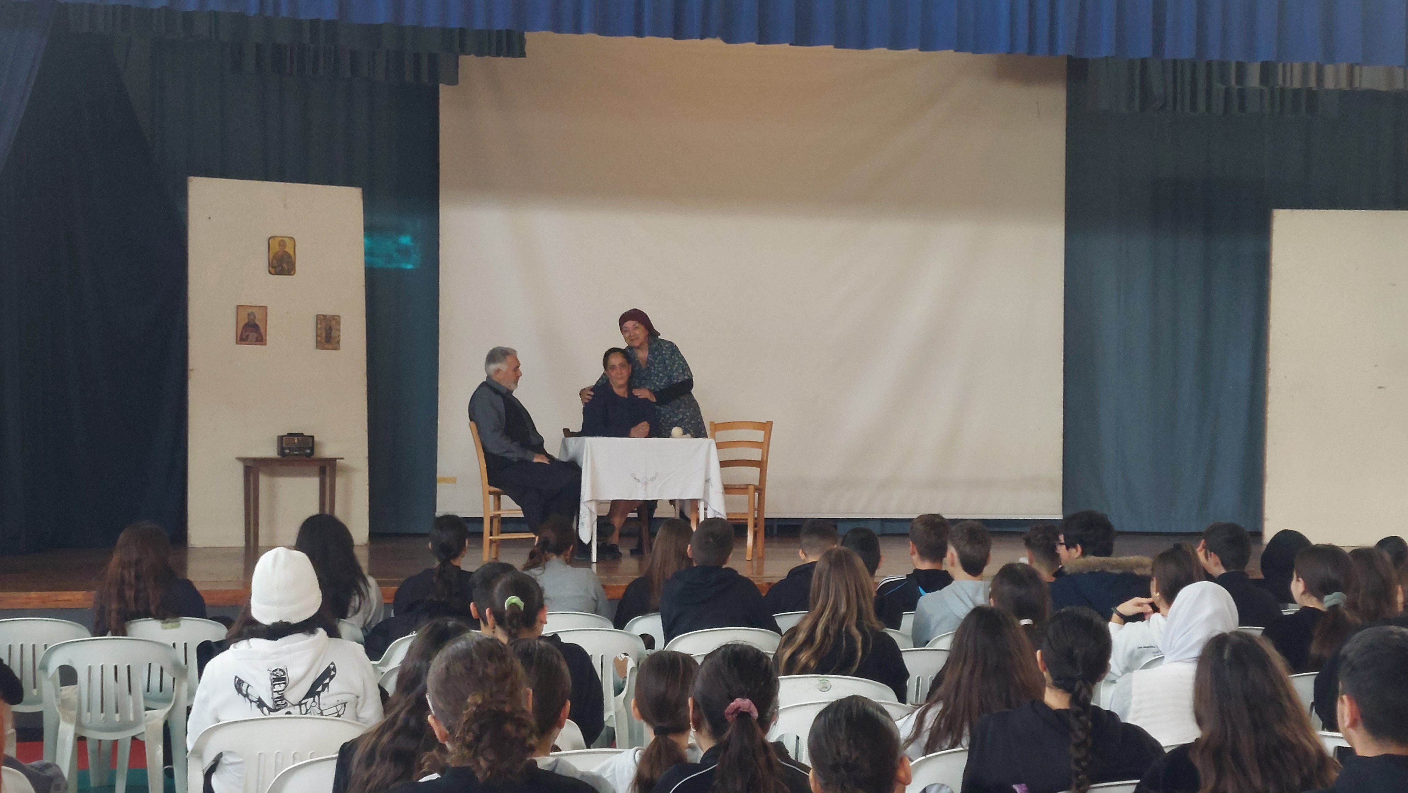 Τη Δευτέρα, 16 Φεβρουαρίου 2026 οι μαθητές μας είχαν την ευκαιρία να παρακολουθήσουν τη θεατρική παράσταση «Ελεύθερες ψυχές» του Γιώργου Θεοδοσίου από τη θεατρική ομάδα Παρασκήνιο. Το έργο ήταν αφιερωμένο στην Ελένη Φωκά, τη δασκάλα που για 23 ολόκληρα χρόνια δίδασκε κι έδινε στήριξη στα εγκλωβισμένα παιδιά στην κατεχόμενη Καρπασία, σε συνθήκες αντίξοες λόγω των εξευτελισμών που βίωναν από τους Τούρκους. Η Ελένη Φωκά δεν έπαψε να αγωνίζεται για να κρατήσει υψηλό το φρόνημα, την ελληνικότητα και τη χριστιανική πίστη των δοκιμαζόμενων Ελληνοκυπρίων που έμειναν να φυλάγουν «Θερμοπύλες». Το 1997 ένα πρόβλημα υγείας την ανάγκασε να έλθει στις ελεύθερες περιοχές και δεν της επιτράπηκε έκτοτε να επιστρέψει στο κατεχόμενο χωριό της. Οι αγώνες της συνεχίστηκαν πια στο πλευρό των μανάδων των αγνοουμένων, σε αντικατοχικές εκδηλώσεις και σε διαλέξεις στην Κύπρο και στο εξωτερικό, όπου συνέχισε να προβάλλει το εθνικό μας πρόβλημα.